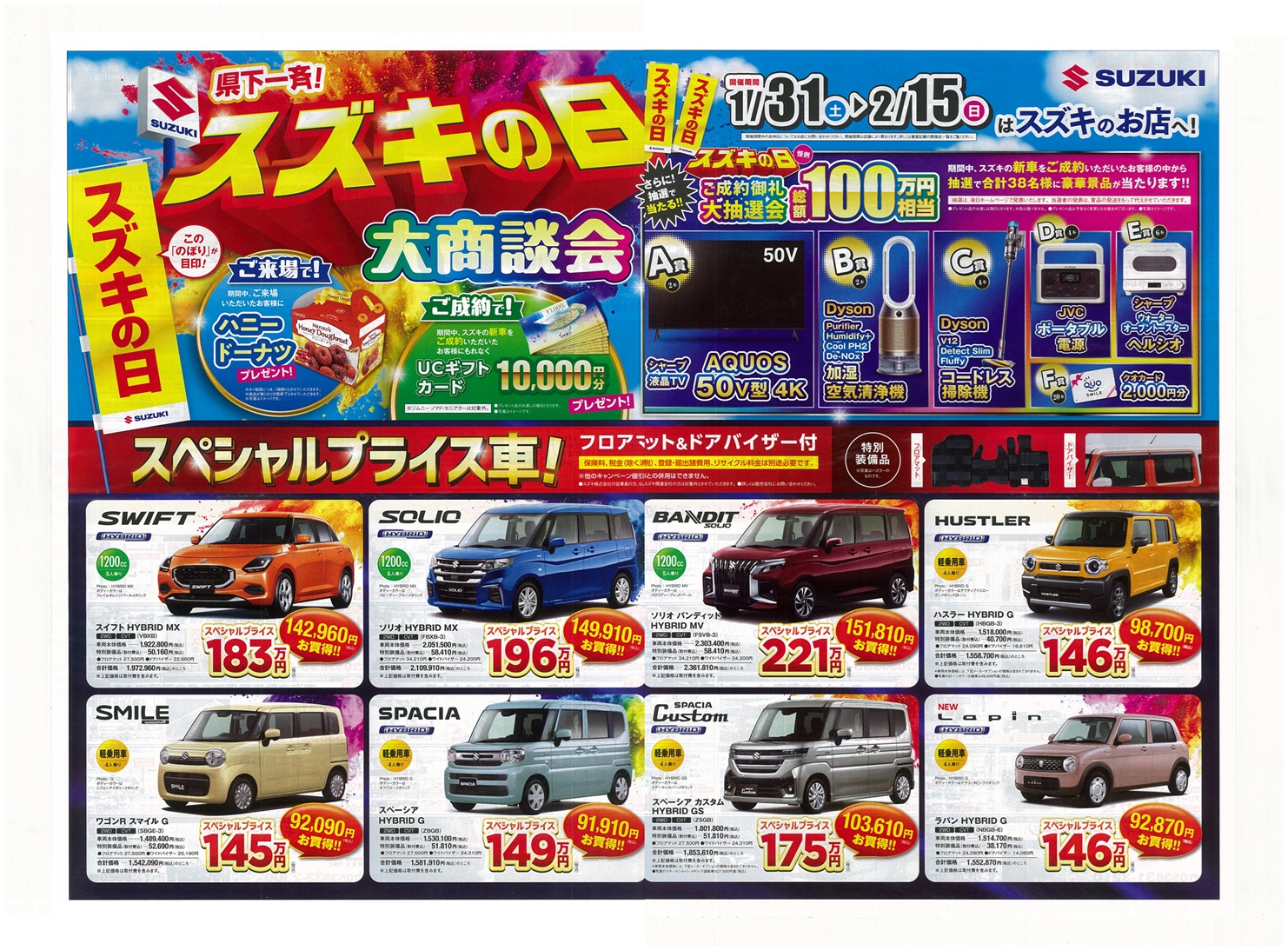 【スズキ】県下一斉!スズキの日大商談会【1/31(土)~2/15(日)】